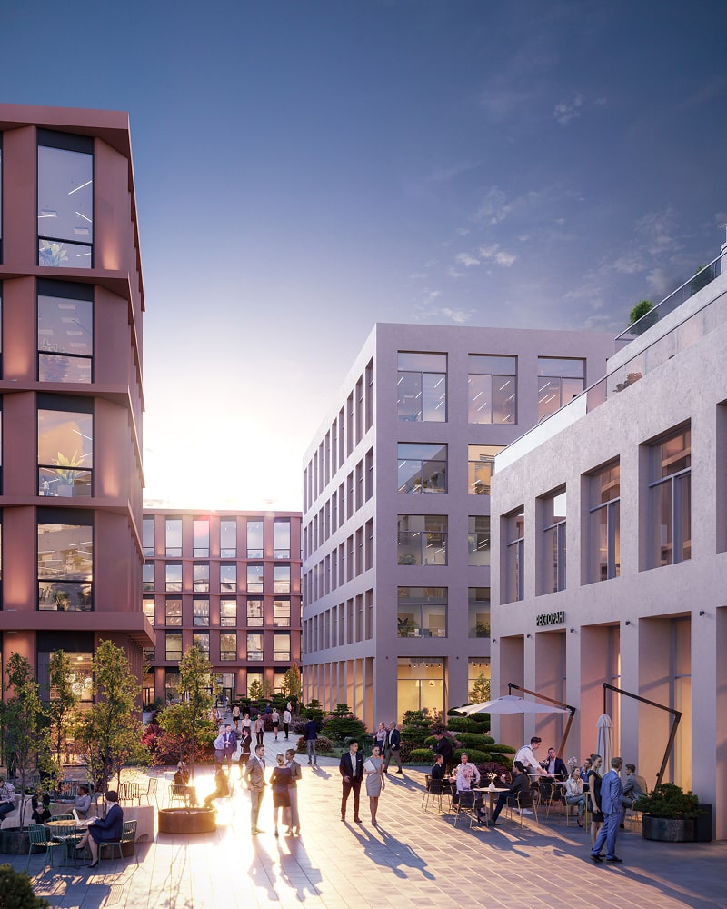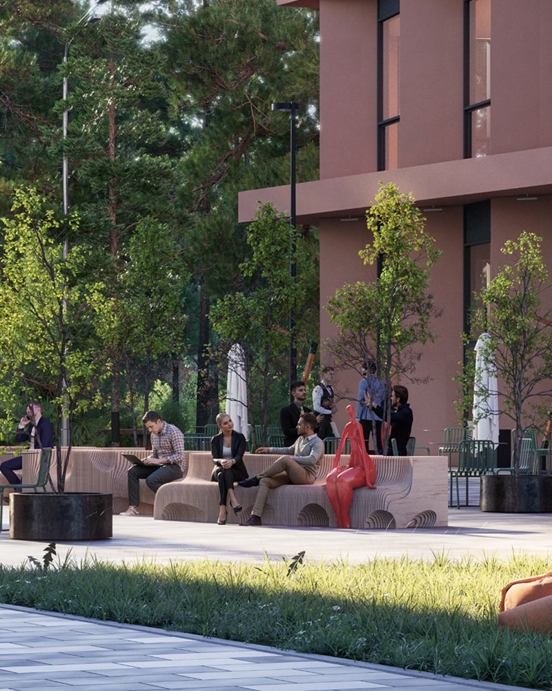 РАБОТАЙТЕ НА СВЕЖЕМ ВОЗДУХЕ В ОТКРЫТОМ КОВОРКИНГЕ ИЛИ ПРОВОДИТЕ СОЗВОНЫ И ВСТРЕЧИ В КАФЕ И РЕСТОРАНАХ ВО ВНУТРЕННЕМ ПРОГУЛОЧНОМ БУЛЬВАРЕ. ВОССТАНОВИТЕ СИЛЫ В ФИТНЕС-ЦЕНТРЕ ИЛИ ПРОГУЛЯВШИСЬ ПО ЛЕСУ