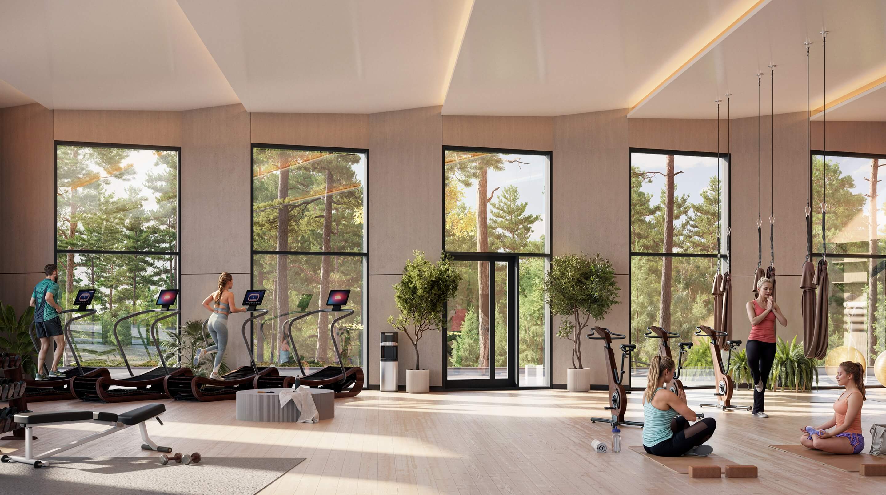 В бизнес-парке — собственный фитнес с видами на природу. Переключитесь после работы или зарядитесь энергией на весь день после утренней тренировки!